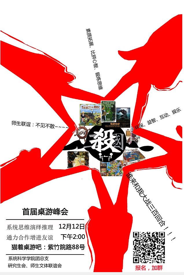 12月12日下午,91在线 团总支组织同学们来到紫竹院附近的猫着桌游吧,参加了第二届桌游峰会活动。在去年冬天,91在线 举办了以“系统思维演绎推理,通力合作增进友谊”为主题的首届桌游峰会,今年的活动延续了去年的主题。