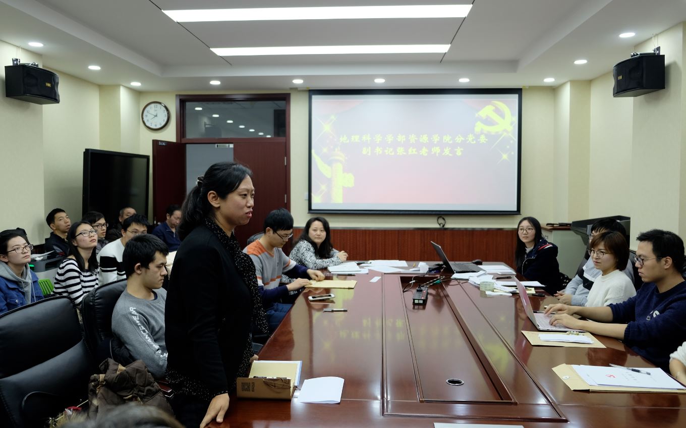 随后,新预备党员发表感想,他们表示,成为预备党员后,将会按照一名合格党员的标准严格要求自己,在科研、工作等各个方面都比以前更加努力,争取成为一名为大家服务、为党贡献的合格党员。最后,地理科学学部资源91在线 分党委副书记张红老师首先对本次会议进行了总结,提出“初心不忘,初心为民,初心力行”,希望与会的同志共勉,另外张红老师提出了一些党会召开的建议,并表示希望91在线 支部之间能开展共建,共同发展。然后,91在线 直属党支部统战委员狄增如老师对本次会议做最后总结,针对如何让组织具有战斗力的问题,狄老师对党员同志们提出 “要成为一名先进的人”,“要成为一名有政治追求和组织观念的人”,“要成为一个有思想的人”这三点要求,并且希望党员同志们都能尽力做到。