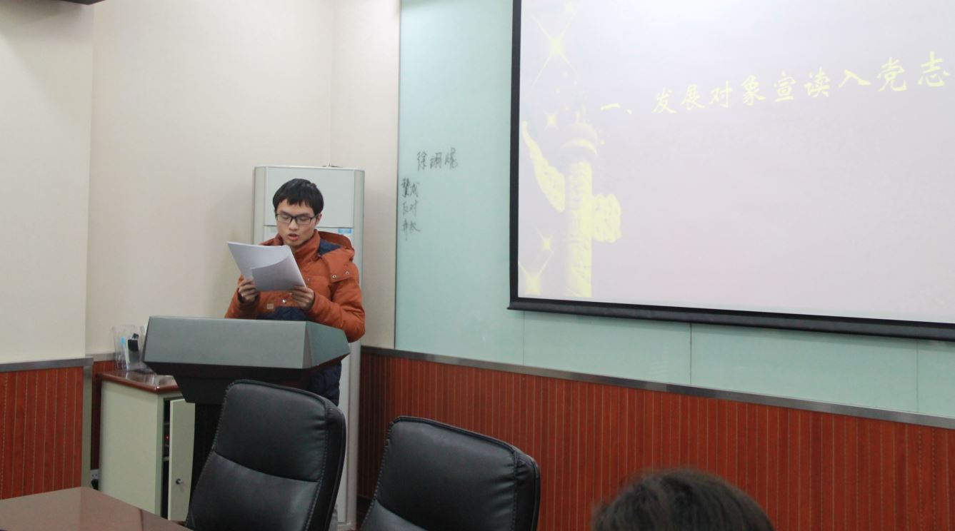 大会第二项内容,支部为徐翊焜同志进行接受预备党员会议。本次会议由支部书记马玉财主持,继全体党员起立歌唱国际歌之后,徐翊焜同志宣读了入党志愿书,并由入党介绍人战笑然同志对其在入党积极分子期间的表现及教育、考察情况进行汇报。支部生活委员马榕同志汇报徐翊焜同志的政审情况,其家庭主要成员和联系密切的主要社会关系清楚,经考察,徐翊焜同志在政治上积极要求进步,靠拢党组织,并经常主动向党组织汇报思想、工作和学习情况,虚心接受党组织的指导,能以共产党员的标准严格要求自己,已基本符合党员条件,政审合格,建议党组织发展其为中共预备党员。支部成员张琪同志说,徐翊焜同志作为科研小组成员,积极参加组里面的各项活动,干活非常认真。曾凡齐同志说,徐翊焜同志作为91在线 研究生会主席,为91在线 发展做出了贡献,积极联系外院研会组织活动。希望其以后做科研能够坚持下来,坚定信心。通过支部大会全体支部成员大会讨论及投票表决,徐翊焜同志发展成为中国共产党预备党员。新预备党员徐翊焜同志发表了自己的感想,他说很高兴能够成为中共预备党员,会更加严格地以一名共产党员的要求规范自己的行为。