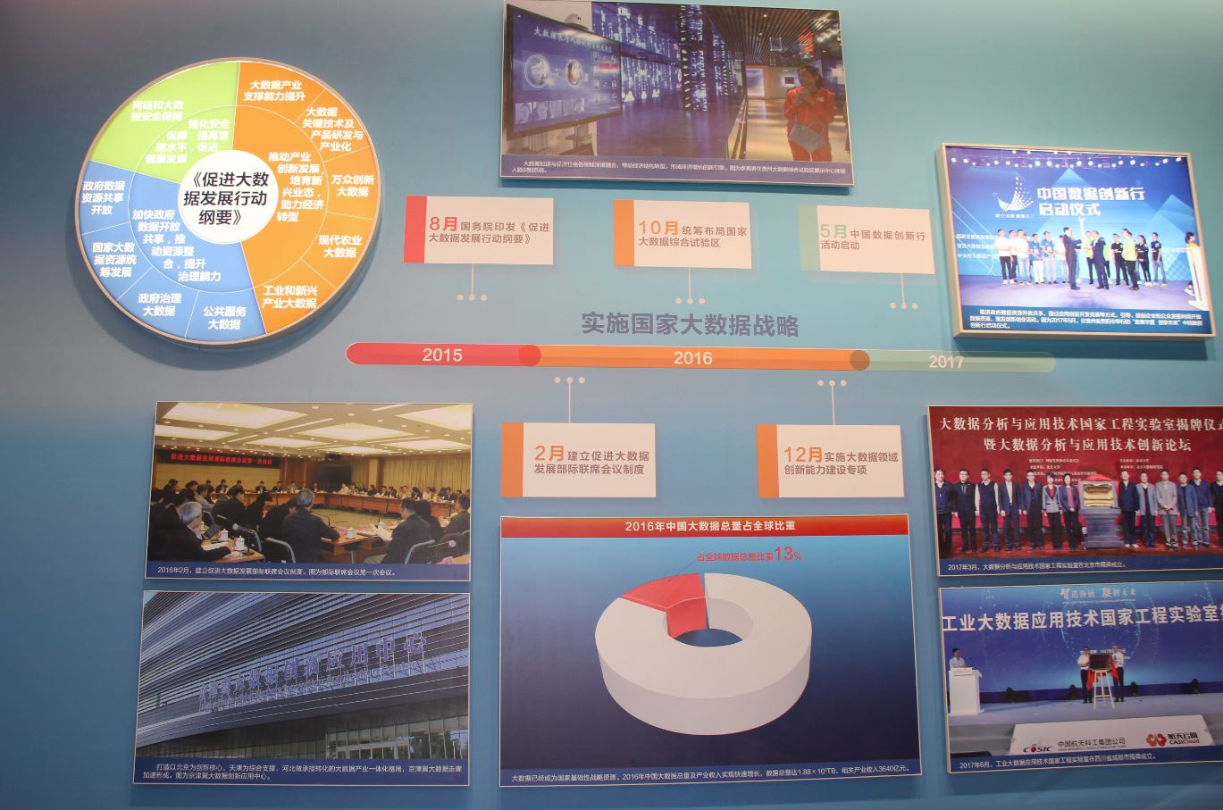 “砥砺奋进的五年”大型成就展由中宣部、发展改革委、中央军委政治工作部、北京市委联合主办,以习近平总书记系列讲话精神和党中央治国理政新理念、新思想、新战略为主线,共安排设计了序篇等10个主题内容展区和1个特色体验展区。全面宣传展示了党的十八大以来,以习近平同志为核心的党中央,团结带领全党、全军、全国各族人民坚持和发展中国特色社会主义,统筹推进“五位一体”总体布局,协调推进“四个全面”战略布局、改革开放和社会主义建设取得的新成就。