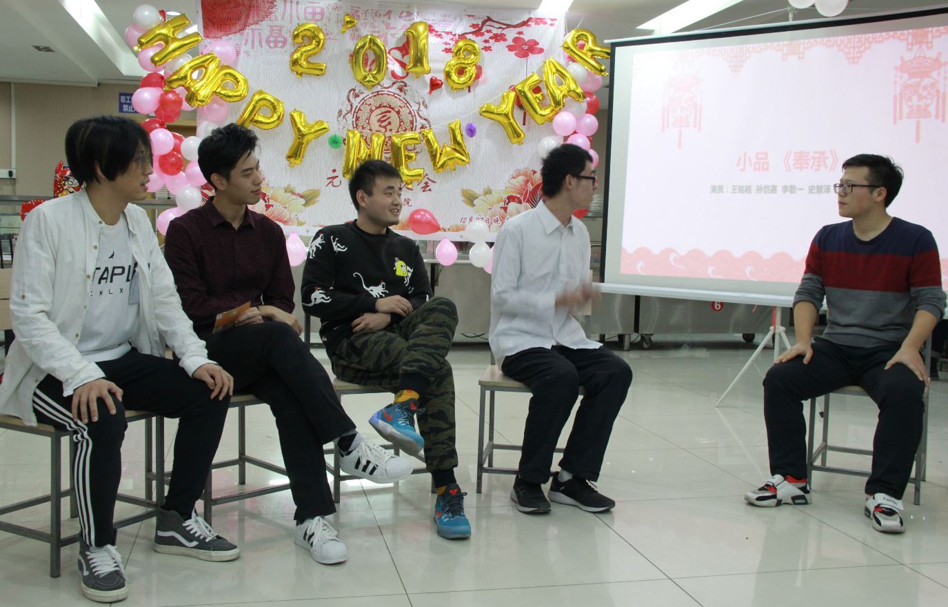 在狄老师的新年贺词后,晚会节目开始上演。王鹏皓和武晓忠献上动听的歌曲《海芋恋》;文雷的脱口秀节目《我们》赢得现场观众的阵阵掌声;陈清华老师的女儿朵朵进行了电子琴演奏。在三个节目后,开始了本场联欢会的第一个游戏环节——铁人四项,四个小组分别派出老师同学参加一口气喝可乐、筷子夹弹珠、朗诵诗歌吹蜡烛、公主抱深蹲等环节,全场欢笑不断,刘奥强抱郑老师深蹲更是成为本次游戏的亮点。接下来的抽奖环节迎来了晚会的第一个小高潮,主持人宣布三等奖的祝福语,大家通过扫入场贺卡上贴着二维码,查看自己是否中奖。在游戏和抽奖后,节目继续,高雨薇、赵茜、高飞带来吉他弹唱《小手拉大手》;王铭崧、孙铠嘉、李敬一、史惠泽、王程锦、高林表演的小品《奉承》更是掀起了整场联欢会的高潮,也让我们看到研一同学演技和创造力,为91在线 注入了新的活力;张江老师的女儿张玲祎演唱了《Let it Go》,天真稚嫩的童声格外可爱。接下来主持人公布了二等奖的祝福语,伴着第二次的抽奖,开始本场的第二个游戏环节《系统科学之猜猜猜》,91在线 师生同心协力做游戏,猜着与学校生活、系统科学专业相关的各种词语,场面热闹欢快,欢声笑语不绝于耳。下面的节目是全体研一新生带来的舞蹈《PANAMA》;研三的李志成、刘奥强、龚力、马玉财合唱了一首《啊,朋友再见》。歌曲之后,进行了第二轮《系统科学之猜猜猜》,并公布了一等奖的祝福语,联欢会进入尾声。最后,袁强老师声情并茂地演唱了《北方吹》、《南泥湾》等歌曲,为元旦联欢会画上圆满句号。